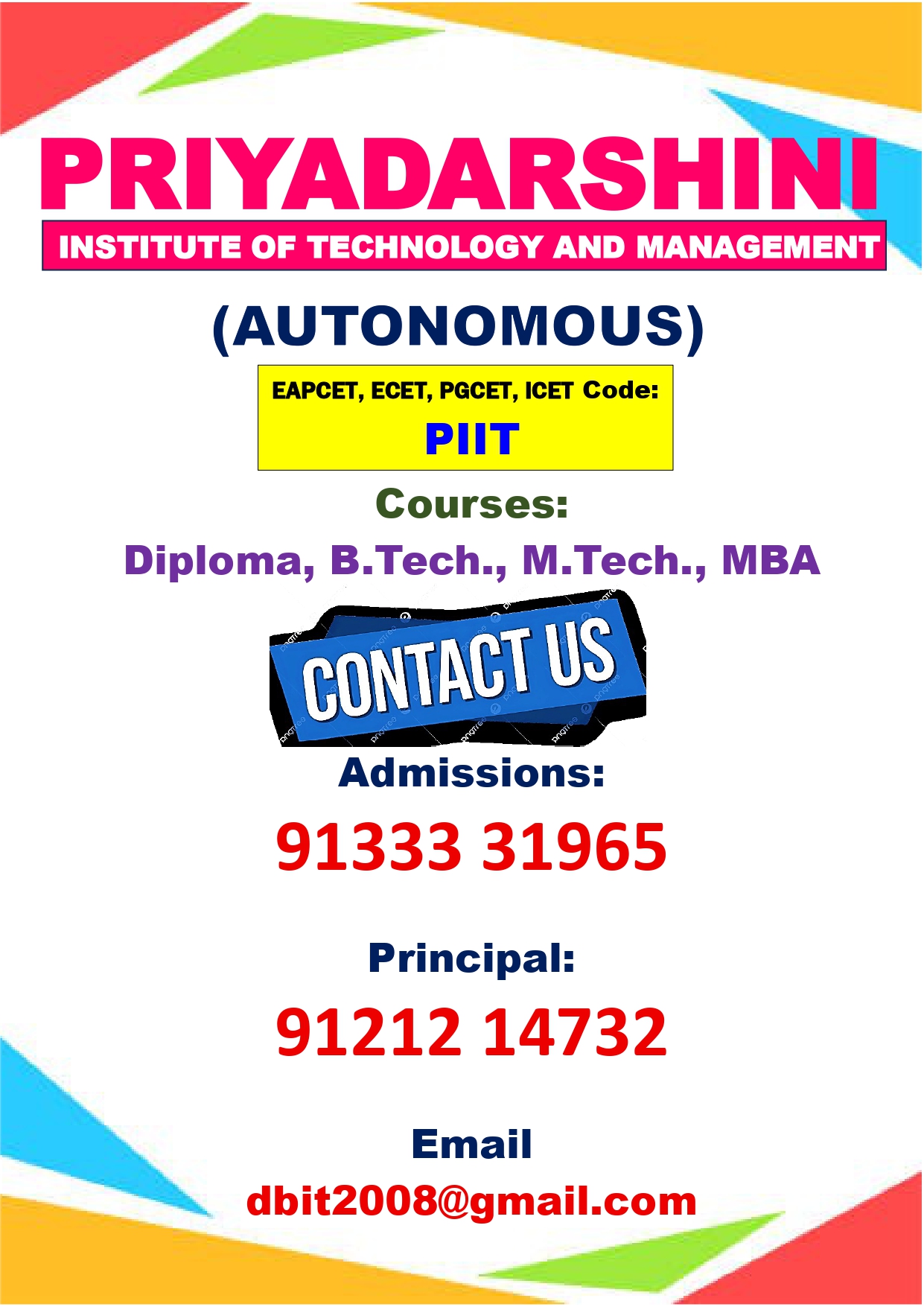 Priyadarshini Institute of Technology and Management ,Guntur was established in the year 2007 with sole aim of providing quality higher technical education to rural sector through its dedicated and committed staff. This opportunity made the students to become technologically superior and to serve the nation.